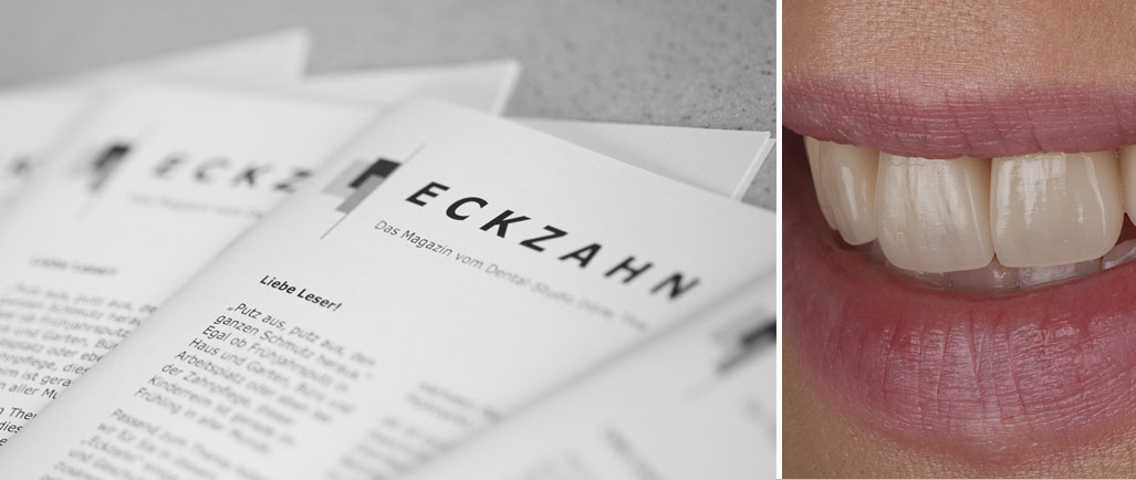 Seit 2006 veröffentlichen wir regelmäßig unser Magazin "Eckzahn". Wir informieren über Wissenswertes und Interessantes aus dem Bereich Zahngesundheit, beschreiben Neuheiten für Patienten und Zahnarztpraxis und geben Ihnen einen kleinen Einblick in den Berufsalltag eines Zahntechnikers.